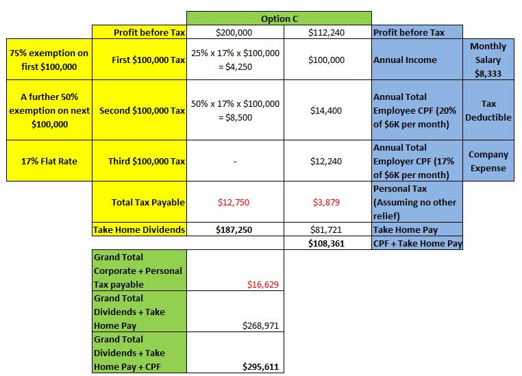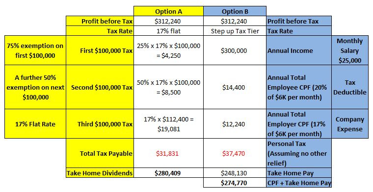 In summary, the business owner would have paid less tax if he has declared part of his company’s earning as a salary to himself, compared to full dividends.